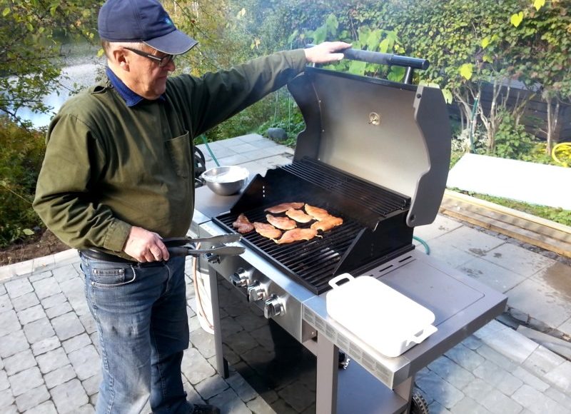 Syyspuolelle kääntynyt sateinen ja viileähkö kesä ei liiemmin houkutellut valmistamaan ruokaa ulkogrillissä. Rivitalon yksityispihassa suunnattiinkin jo ajatukset seuraavaan grillauskauteen asentamalla betonikivistä erillinen grillipatio puisen terassin jatkeeksi. Kivi puoltaa paikkaansa grillin alustana puuta paremmin, ja sävyltään mustasta kiveyksestä eivät mahdolliset grillistä roiskuvat rasvatahrat häiritsevästi erotu.