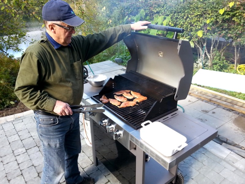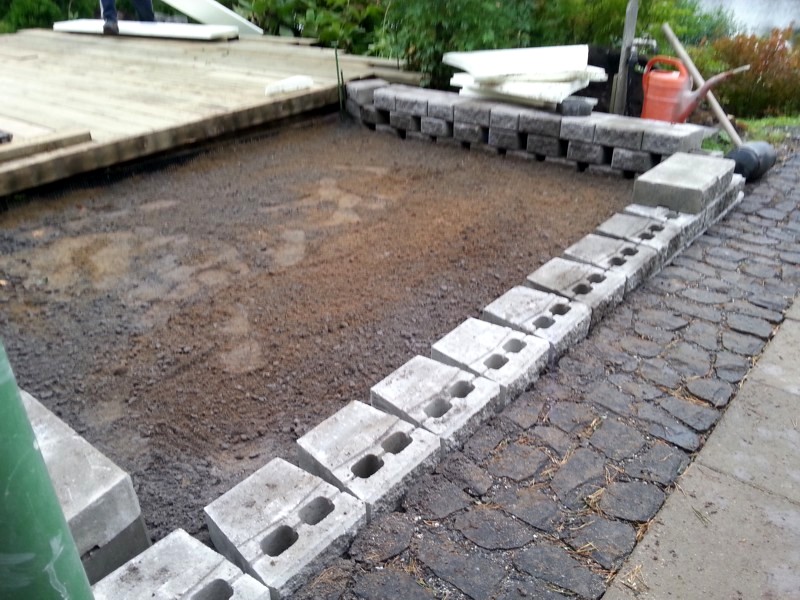 Syyspuolelle kääntynyt sateinen ja viileähkö kesä ei liiemmin houkutellut valmistamaan ruokaa ulkogrillissä. Rivitalon yksityispihassa suunnattiinkin jo ajatukset seuraavaan grillauskauteen asentamalla betonikivistä erillinen grillipatio puisen terassin jatkeeksi. Kivi puoltaa paikkaansa grillin alustana puuta paremmin, ja sävyltään mustasta kiveyksestä eivät mahdolliset grillistä roiskuvat rasvatahrat häiritsevästi erotu.