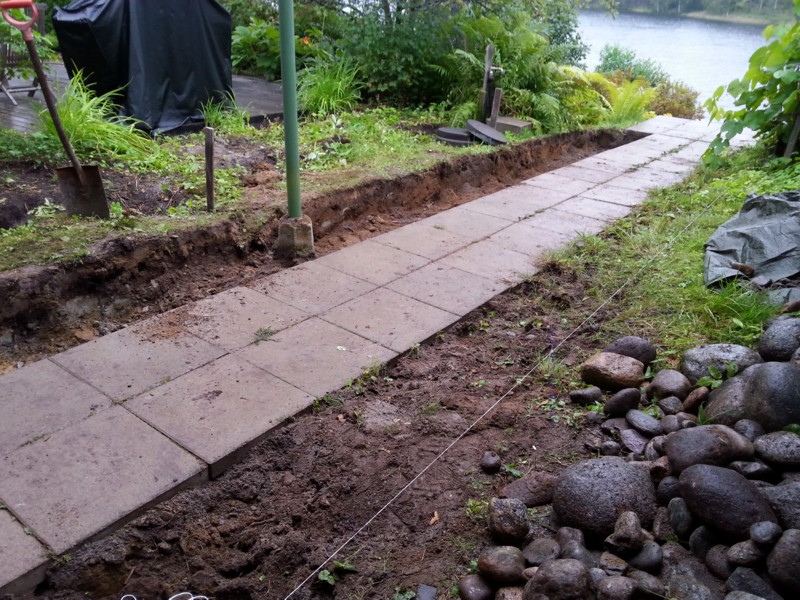 Samassa yhteydessä kunnostettiin rantaan johtava polku korvaamalla laattakäytävän kahta puolta olevat kapeat nurmisuikaleet pihakivin. Olemassa oleva vanha laatoitus korjattiin oikomalla.