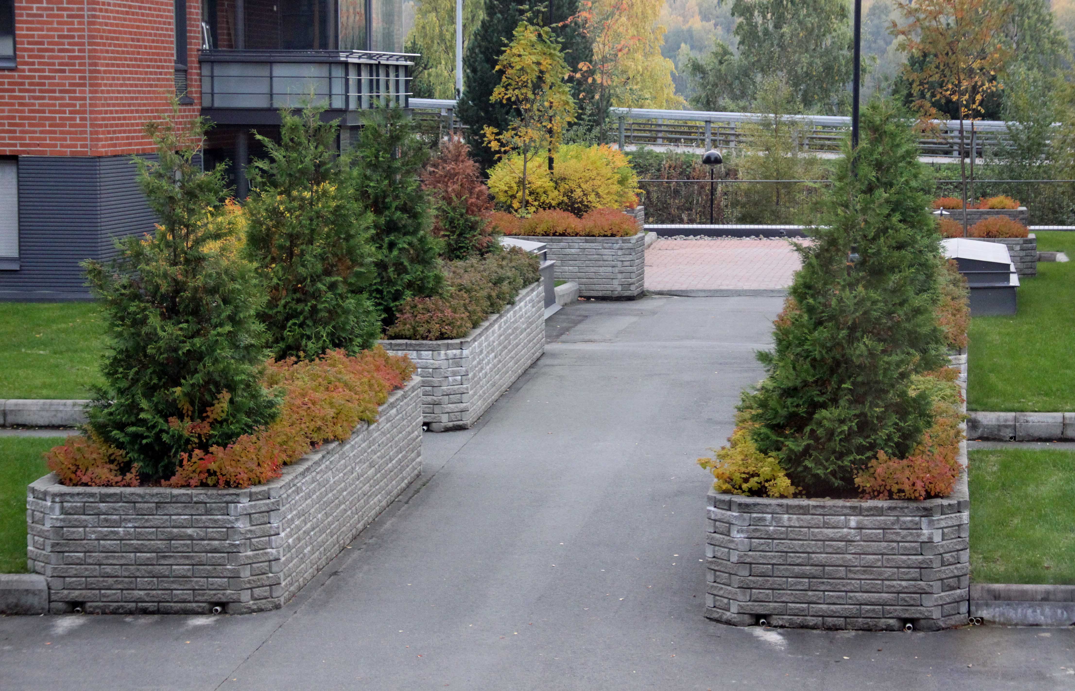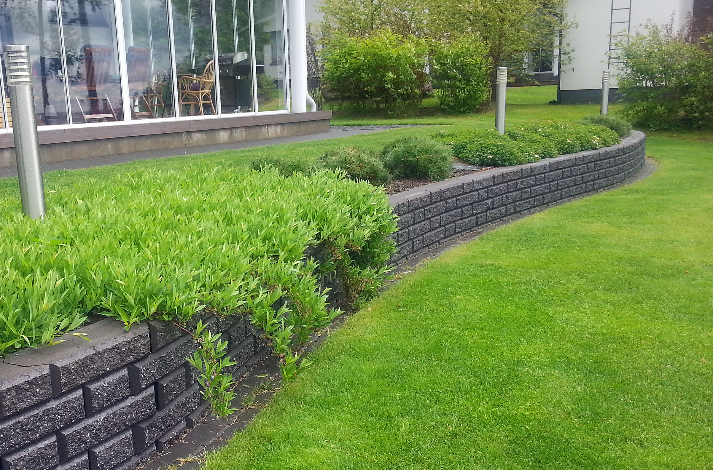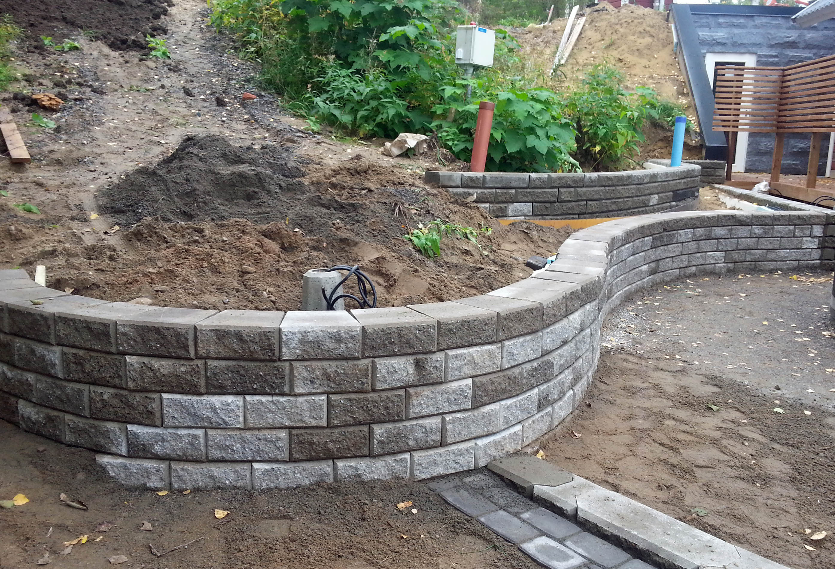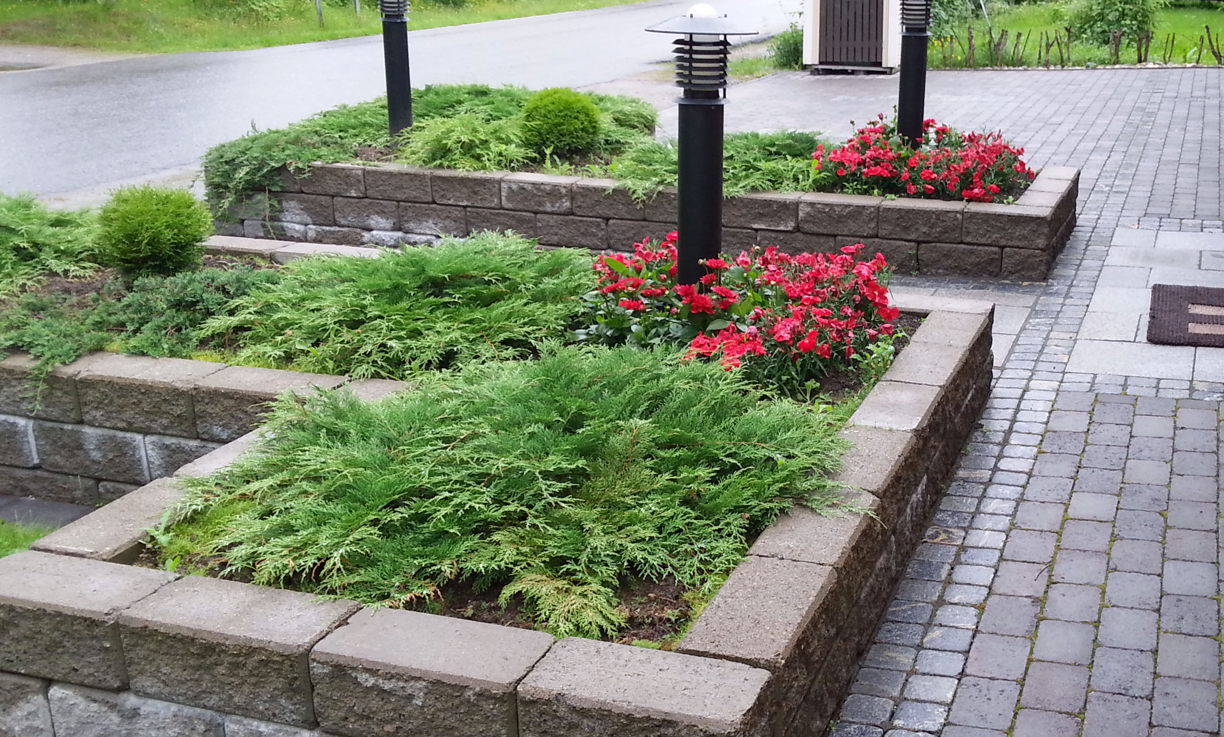 Hieman massiivisemmat umpibetoniset muurikivet ovat parhaimmillaan suorissa ja suorakaiteen muotoisissa